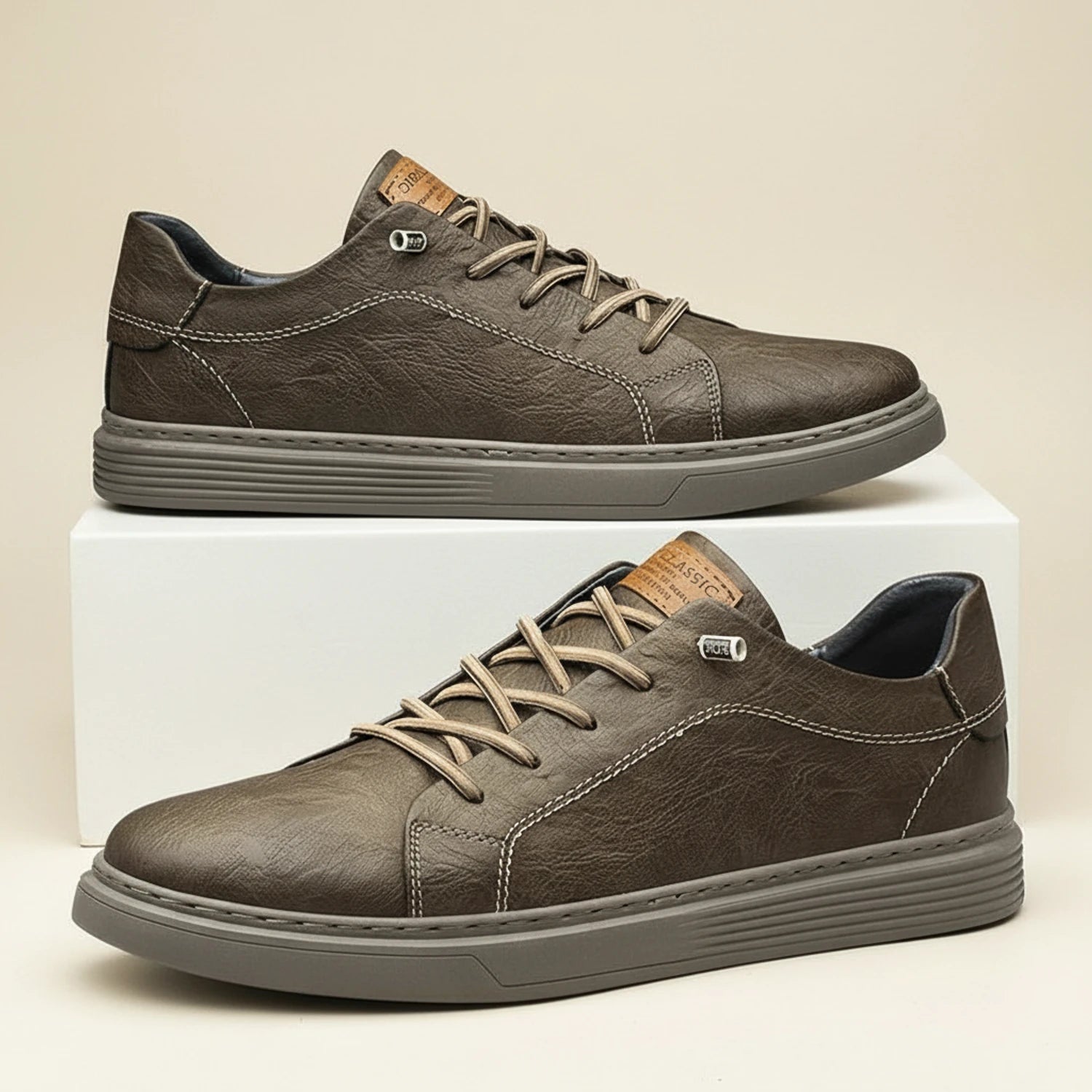 These men's casual sneakers offer a blend of classic style and everyday comfort. The lace-up design and low-top silhouette make them versatile for various casual occasions. Featuring a round toe and contrast sole, they provide a balanced look of subtle detailing and practicality.
