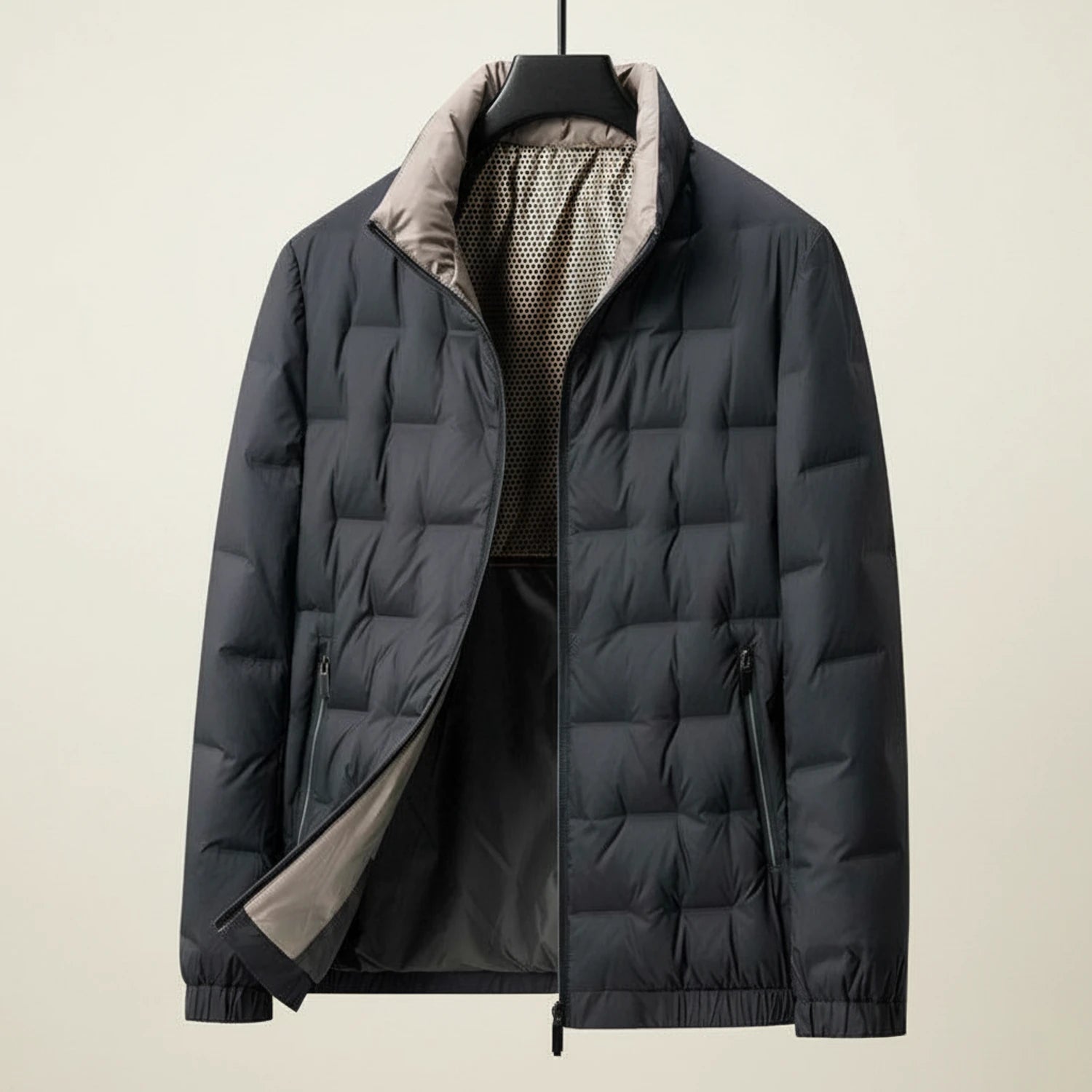 This men's jacket offers a comfortable and versatile outerwear option. Its lightweight design ensures ease of movement, while the quilted puffer style provides added warmth. The stand collar and side zip pockets offer a modern touch, making it suitable for various occasions. Ideal for those seeking a stylish and practical jacket.