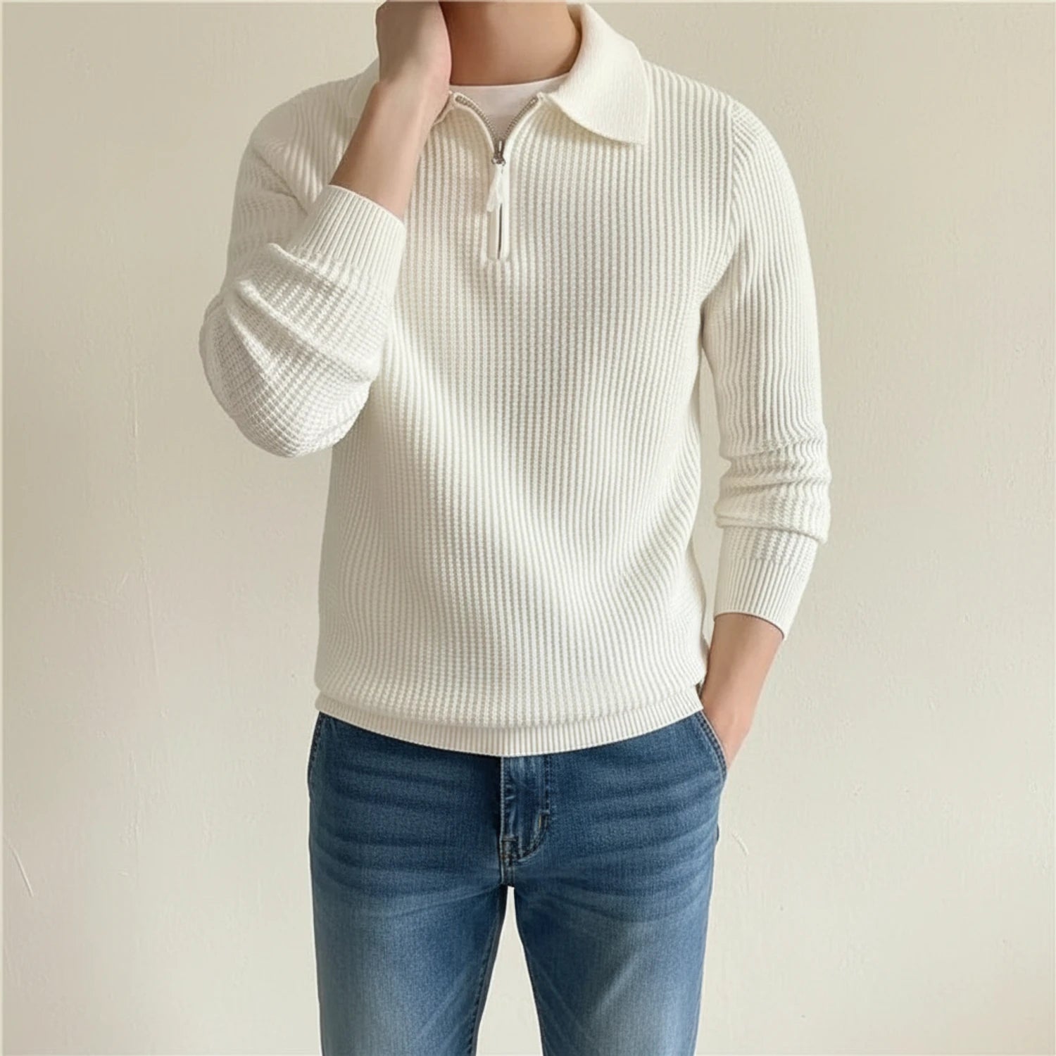 Men's Long-Sleeve Quarter Zip Polo Sweater