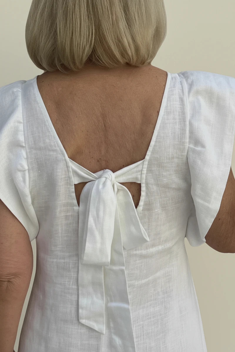 This midi dress features a flattering V-neck and a comfortable shift silhouette, making it an ideal choice for warm weather. The ruffle sleeve detail adds a touch of elegance, while the practical pocket detail enhances its everyday wearability. A versatile and stylish addition to any wardrobe.