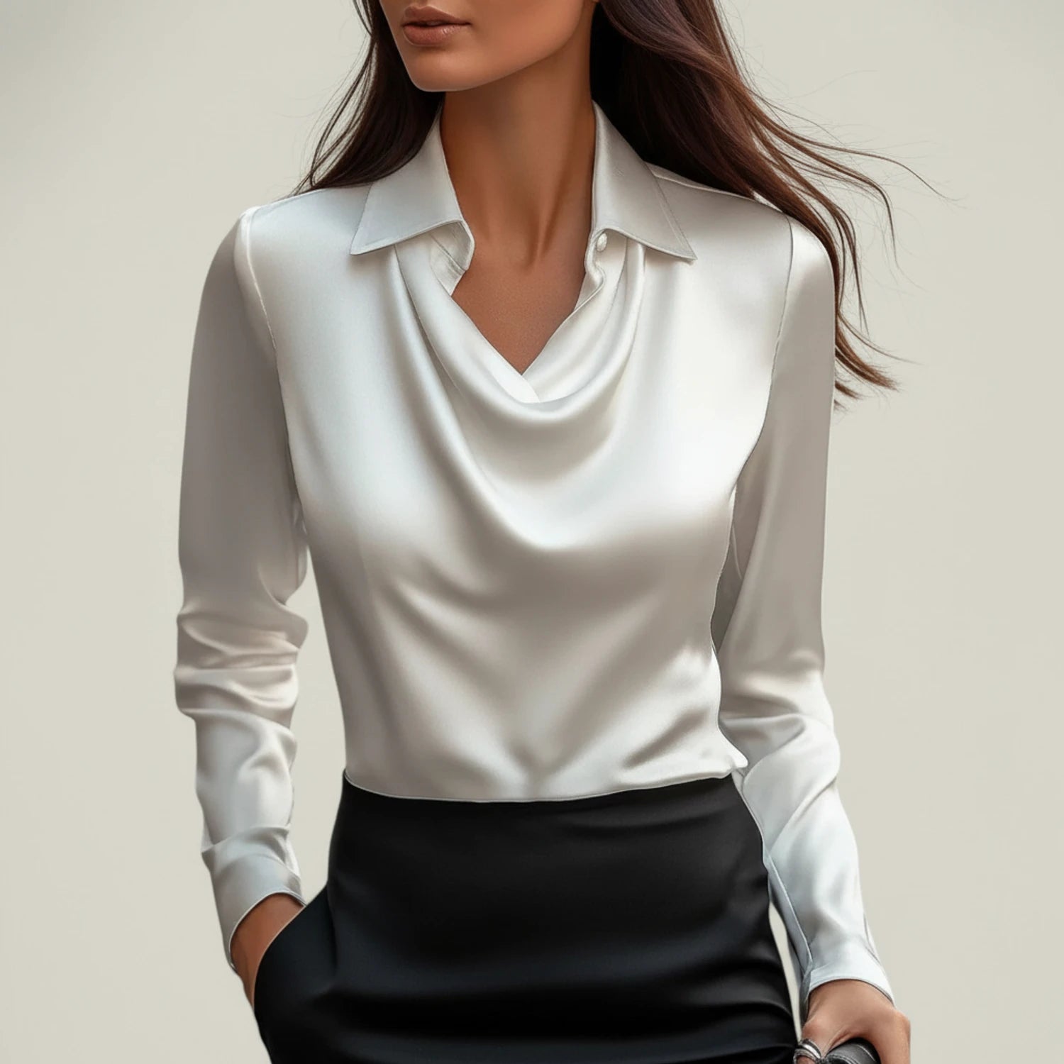 • Cowl Neck Blouse: The draped neckline creates a flattering and elegant look, adding a touch of sophistication to any outfit.