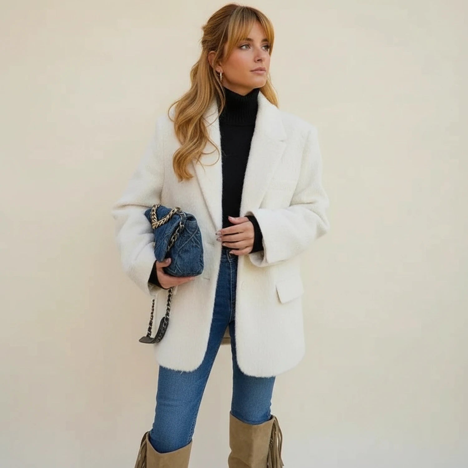 - Oversized Blazer: The relaxed fit provides a comfortable and stylish silhouette, perfect for layering or making a fashion statement.